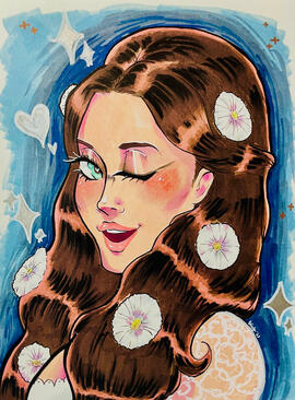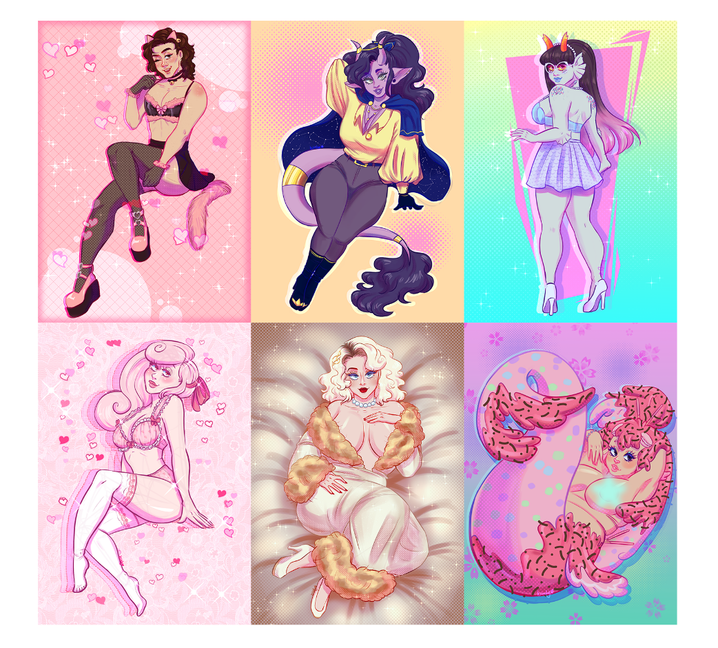 all pieces are made with alcohol markers with some inclusion of colored pencils, gel-pen, and paint markers/sharpies for added polish. all works will be mostly SFW, but can do something on the spicier end (pin-ups and light nudity, nothing super graphic).